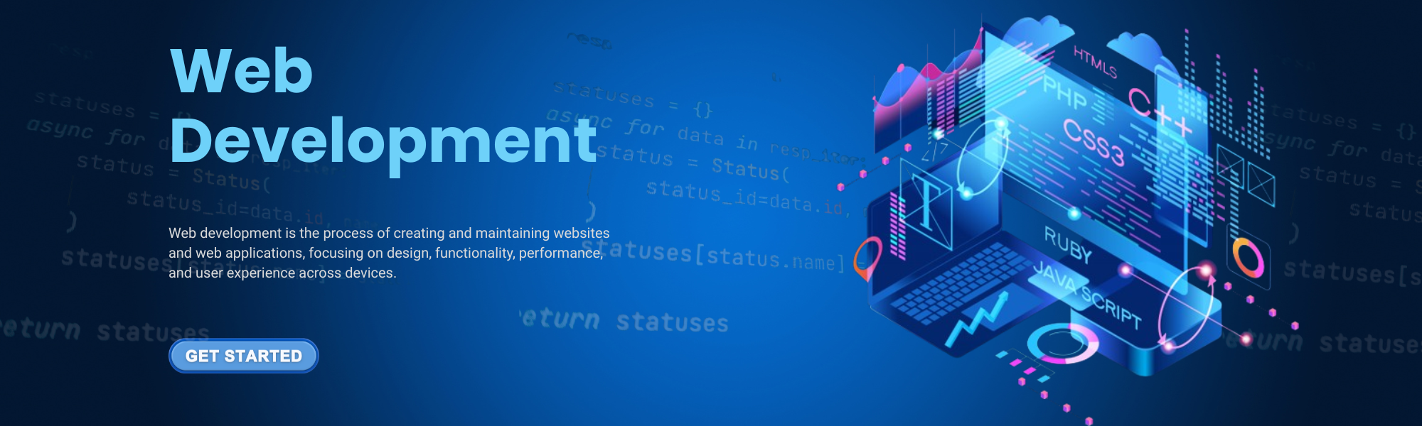 Our web development course teaches you how to design and develop modern websites using HTML, CSS, JavaScript, and current web technologies. Gain practical skills through hands-on training and real-world projects.Lorem ipsum dolor sit amet, consectetur adipiscing elit. Ut elit tellus, luctus nec ullamcorper mattis, pulvinar dapibus leo.